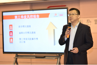三、要决战决胜,全力以赴冲刺四季度收官。一是要强化营收攻坚,优势部门要发挥龙头作用,薄弱环节要制定专项提升计划,确保年度目标圆满完成,力争超额贡献。二是要优化业务结构,降低对单一客户和结算方式的依赖,培育多元盈利增长点。三是要提升运营效率,重点抓好库存与应收账款周转率,向管理要效益。四是要树立底线思维,将风控责任压实到每个业务单元和岗位。五是要全力支持国贸集团组建拓展,为新团队创造良好工作条件。