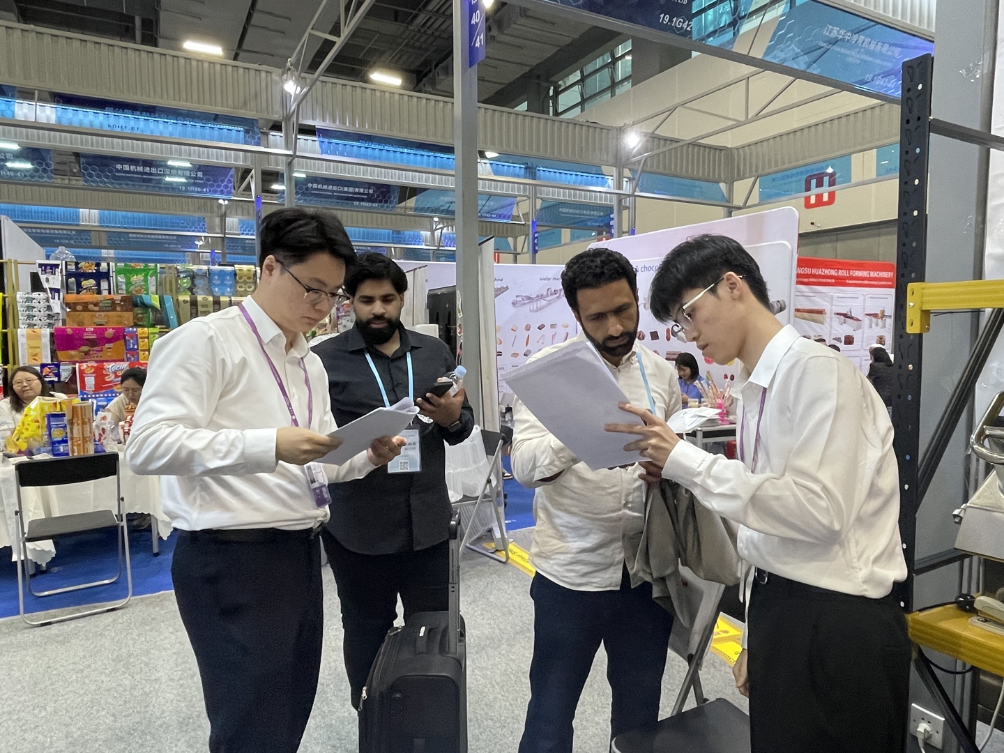 在广交会第一期加工机械展区,轻出公司以“智能化、高效化、绿色化”为主题,展出多款食品机械与自动化设备。其中,组合式烘炉成焦点,它兼具风炉和层式烤炉功能,能满足多样烘焙需求,工艺领先、稳定性好,获众多客户认可已打入美国市场。此外,自动冻肉切片机与切菜机以性价比高和简易操作的性能吸引采购商群体咨询。开展首日,机械展区共接待了来自埃及、巴西、阿根廷、印度、伊朗、约旦、南美、中亚等国家地区超50批次客商。